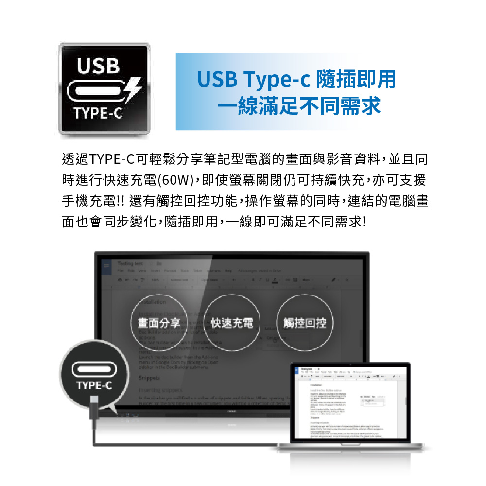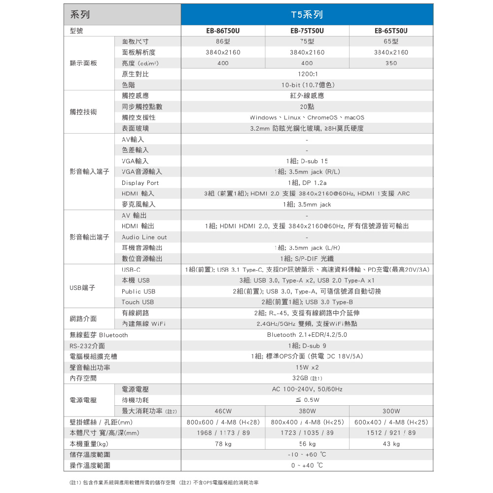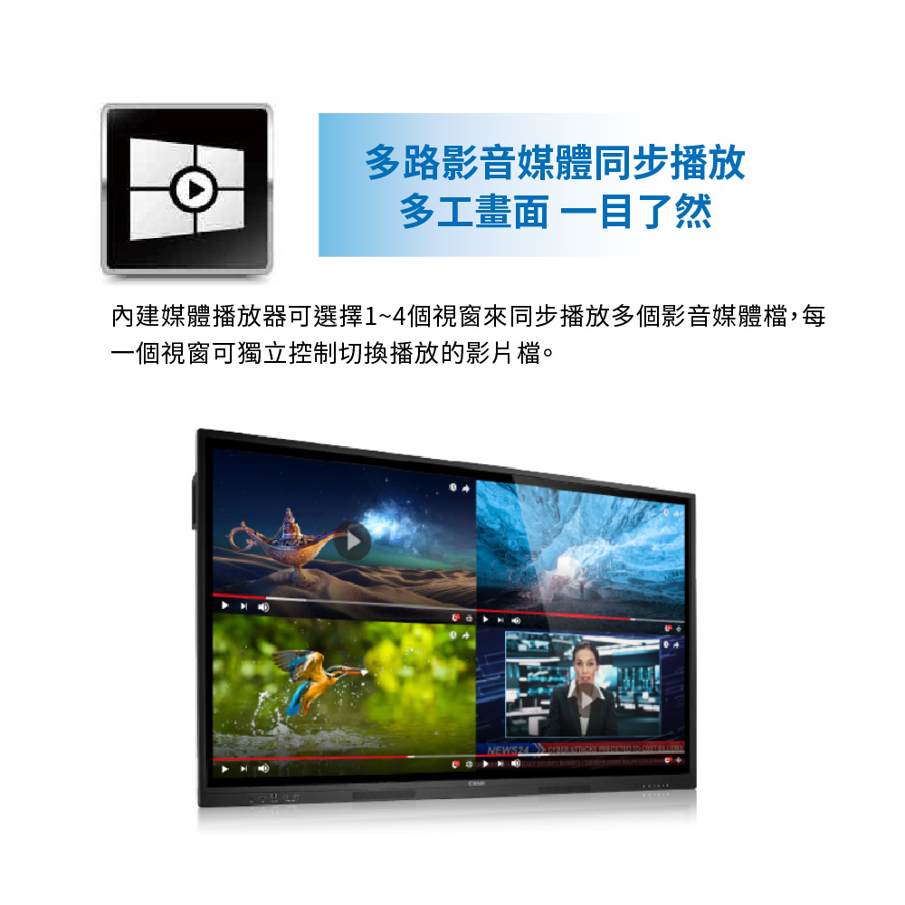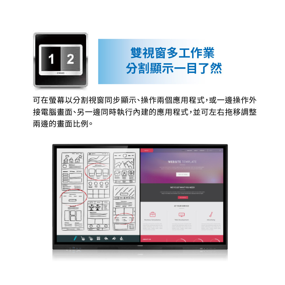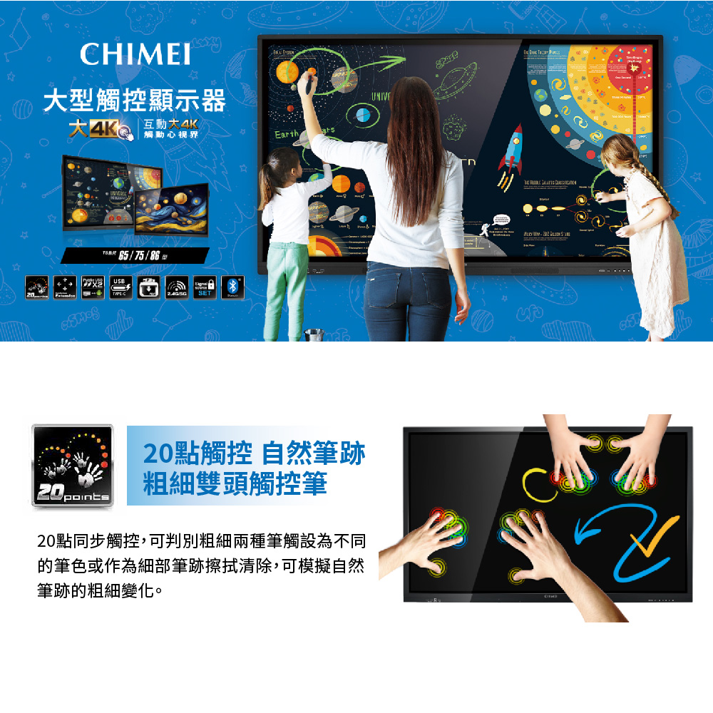 首頁 互動式觸控書寫解決方案 奇美T50U大型觸控顯示器 🔍 奇美T50U大型觸控顯示器 最新T50U系列 – 65型/75型/86型 (可加購移動架) 奇美觸控電視提供全機3年保固,並有全台直營售後服務。 • 互動大4K • 20點觸控,自然筆跡 • 新增護眼模式,書寫狀態螢幕自動調暗 • 內建Android及OPS訊號源自動切換 • 歡迎來電詢問:卡爾國際科技 (02)6617-5045 產品介紹 產品規格 檔案下載 產品介紹 產品規格 檔案下載點擊下載奇美T50U DM: T50U 型錄 T50U 使用手冊 相關商品 可攜式互動電子白板 DB-02C 全球唯一:E化智慧白板 SWBC-55